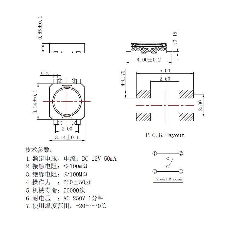 輕觸開關(guān)技術(shù)參數(shù):