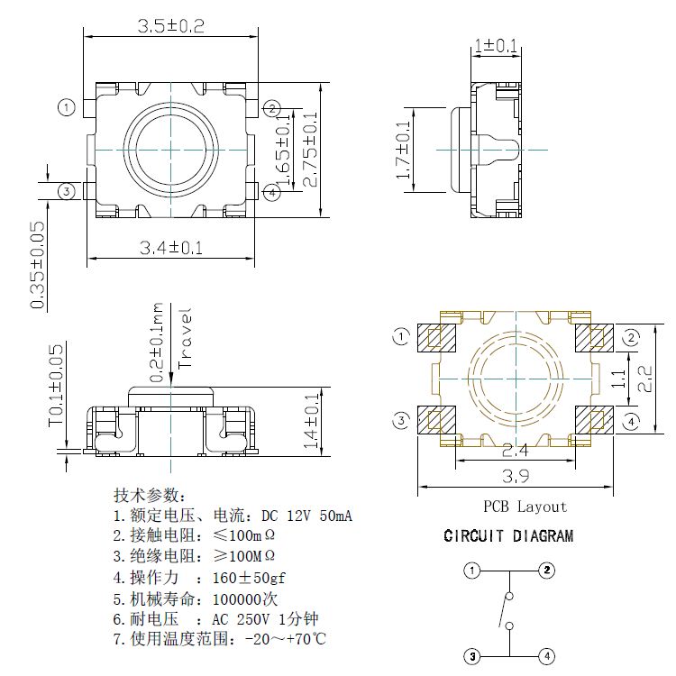 規格:2.7mm*3mm ? ? ? ? ? ? ? ? ?力度:160士50gf