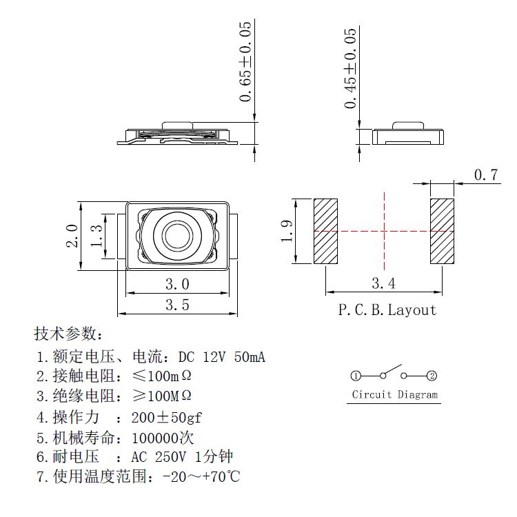 7. 使用濕度: ≤85% RH 8. 使用壽命: 100000次