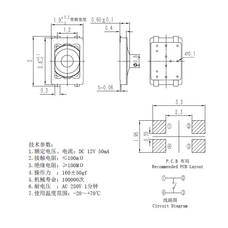 輕觸開關技術參數: