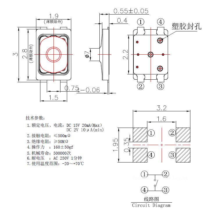 規格:2.8mm*1.9mm ? ? ? ? ? ? ? ? ?力度:160士50gf