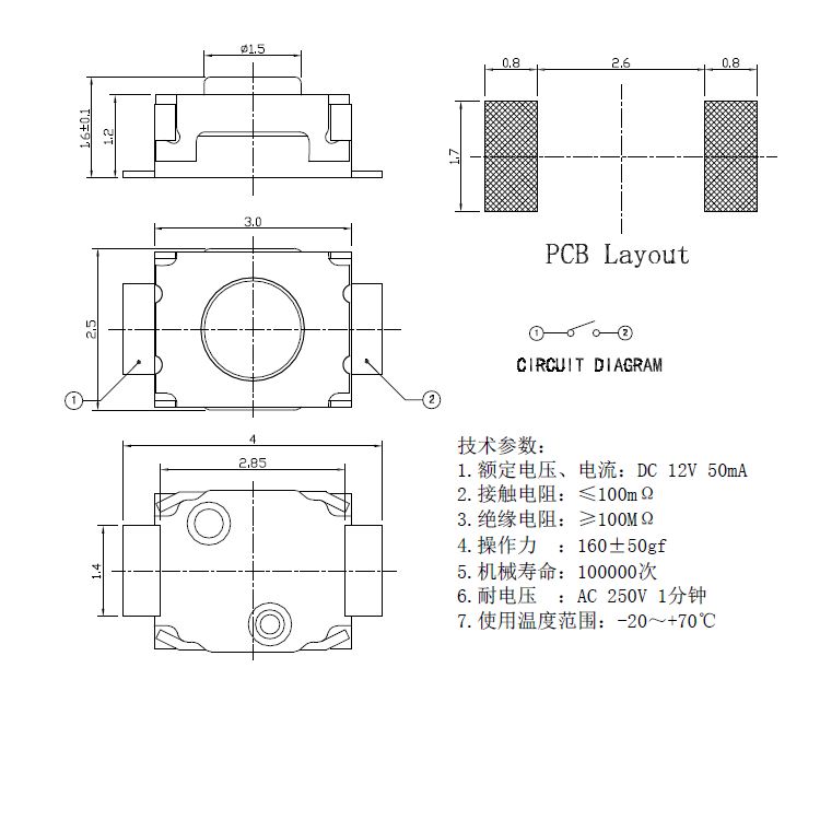 規(guī)格:2.4mm*2.8mm ? ? ? ? ? ? ? ? ?力度:160士50gf
