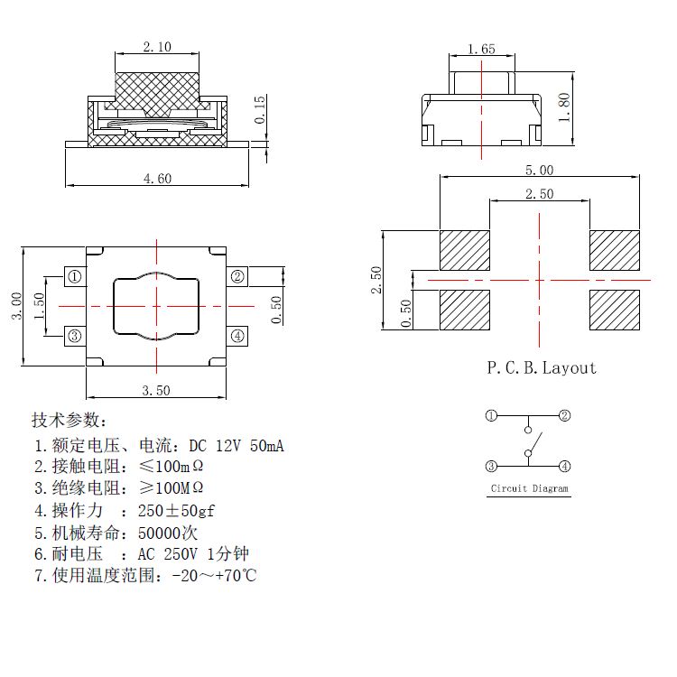 規(guī)格:3mm*4mm ? ? ? ? ? ? ? ? ?力度:250士50gf