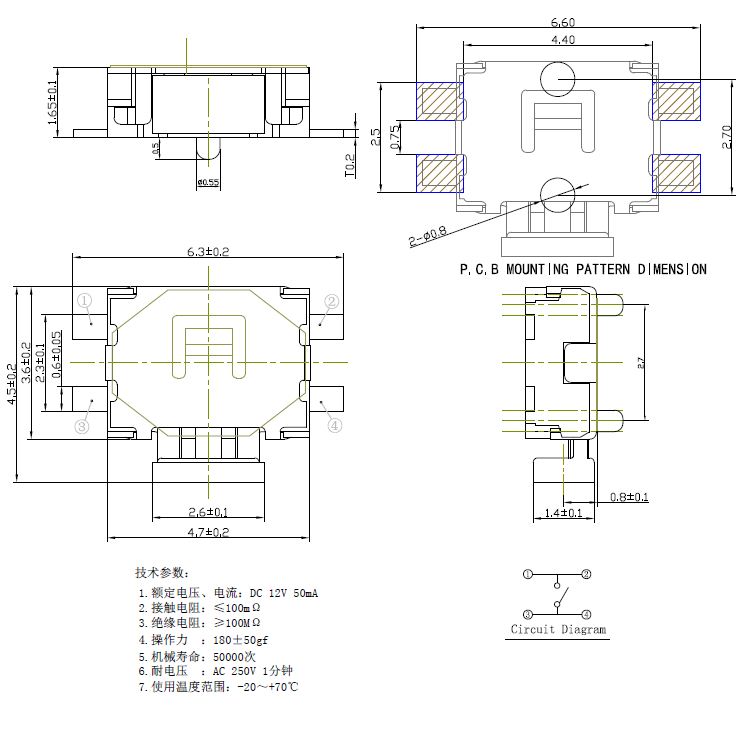 規(guī)格:3.5mm*4.7mm ? ? ? ? ? ? ? ? ?力度:180士50gf