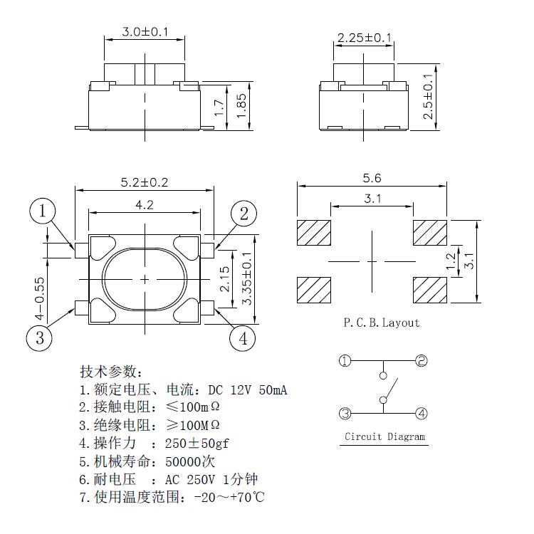 規格:3.2mm*4.2mm ? ? ? ? ? ? ? ? ?力度:250士50gf