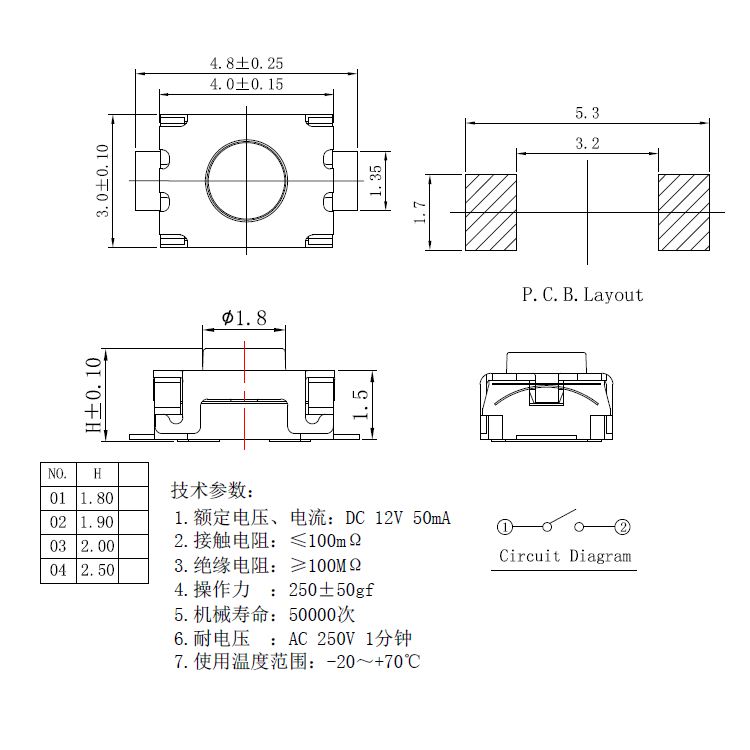 輕觸開關技術參數: