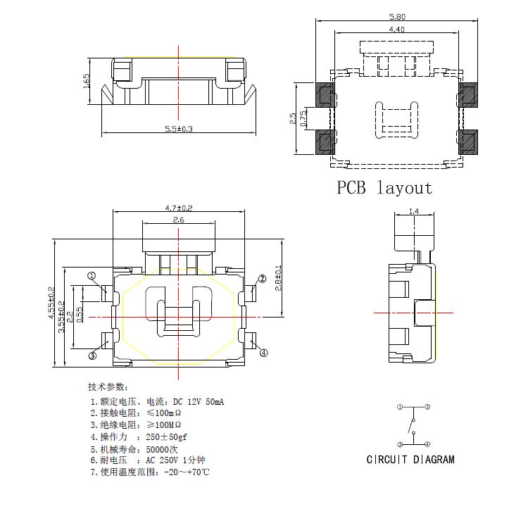 規(guī)格:3.5mm*4.7mm ? ? ? ? ? ? ? ? ?力度:250士50gf