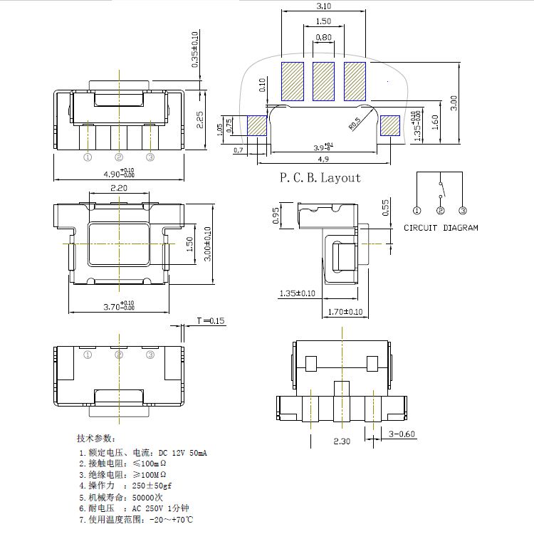 輕觸開關技術參數: