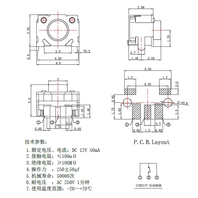 規(guī)格:3mm*4mm ? ? ? ? ? ? ? ? ?力度:250士50gf
