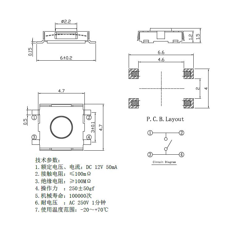 規(guī)格:4.5mm*4.5mm ? ? ? ? ? ? ? ? ?力度:250士50gf