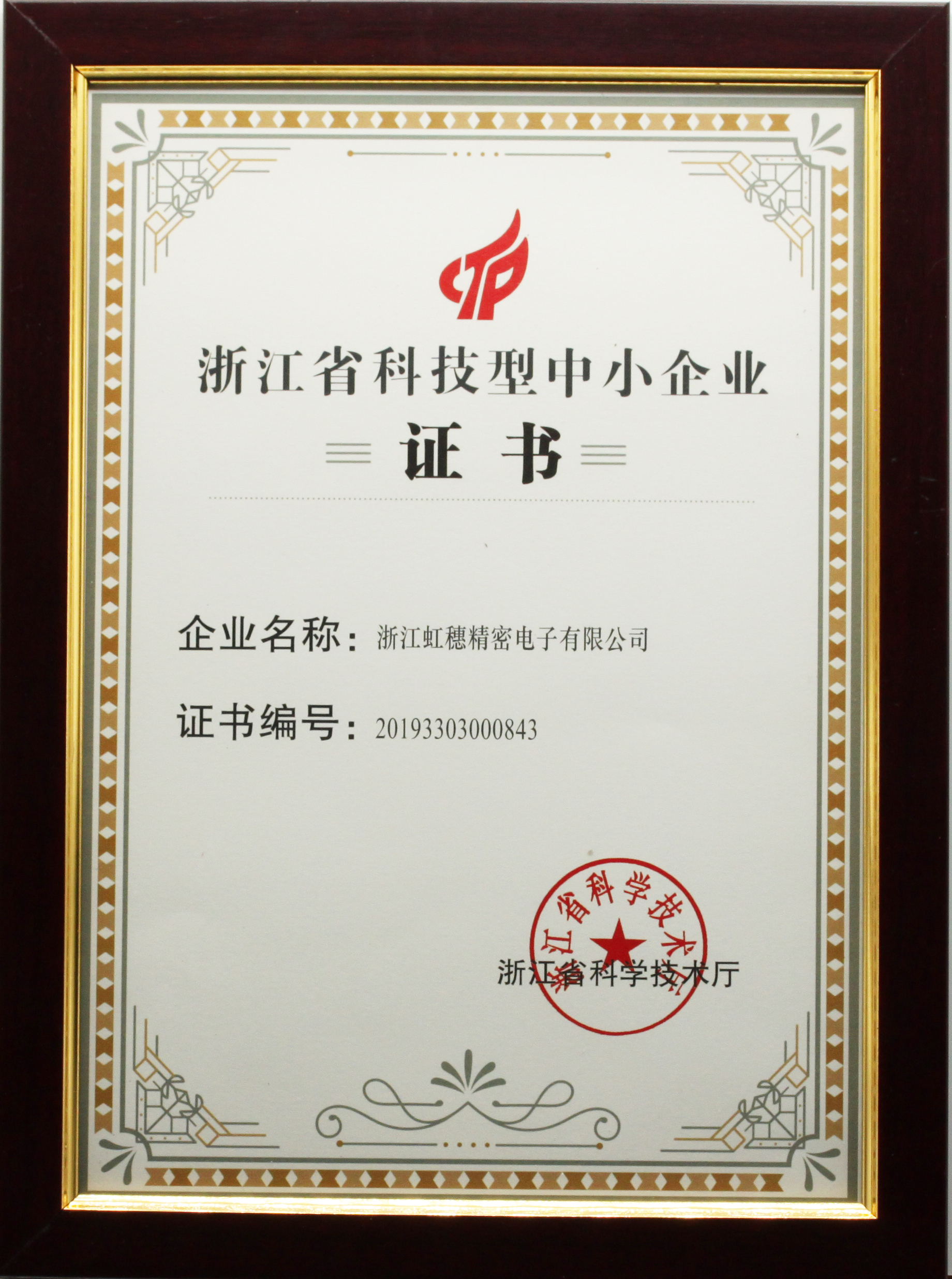 浙江省科技型中小企業證書20193303000843